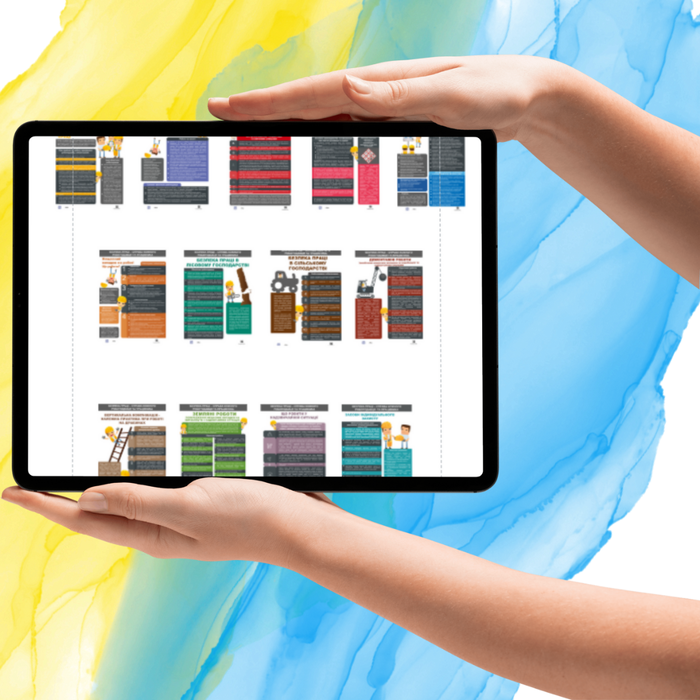 Bezpečnost a ochrana zdraví při práci jsou klíčovými faktory pro vytváření zdravého a bezpečného pracovního prostředí. Tento souhrn 13 informačních plakátů, vypracovaných v ukrajinštině, je určen pro zaměstnavatele a zaměstnance, kteří potřebují jasně pochopit a aplikovat zásady bezpečnosti při práci.