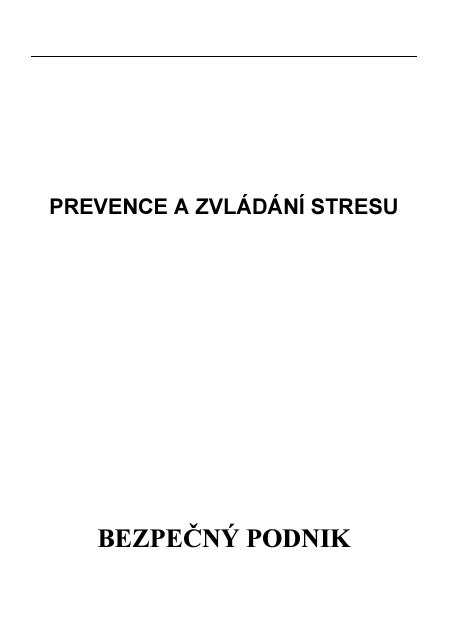 Publikace se věnuje problematice stresu, který je v dnešním každodenním životě pevně zakotven. Obvyklá míra stresu je nazývána zátěž, ovšem překročí-li určitou mez, pak se stává stresem, který by neměl být podceňován. První část je věnována stresu z pohledu jedince a sebepoznání. Následující kapitoly jsou pak zaměřeny na zvládání stresu, zvyšování odolnosti proti stresu a na zásady a tipy, jak se stresem bojovat.